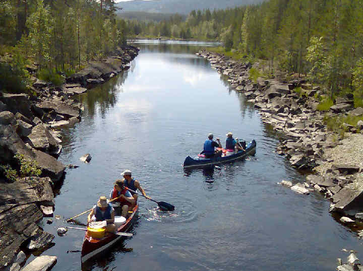 On this guided tour, after an introduction to canoe paddling, we follow old waterways and listen to their floating tales. Many times we will come upon well-aged relics from the floating period. We will, for example, stay overnight at or in a little floating hut respectively, visit the floating tunnel, come across waterfalls, make a trip to the "Tinnsjøstig" in the "Raua" canyon and to fjord-like Tinnsjø. With a little luck we will see beavers, elks, cranes... [click here for detailed information on tours and prices].